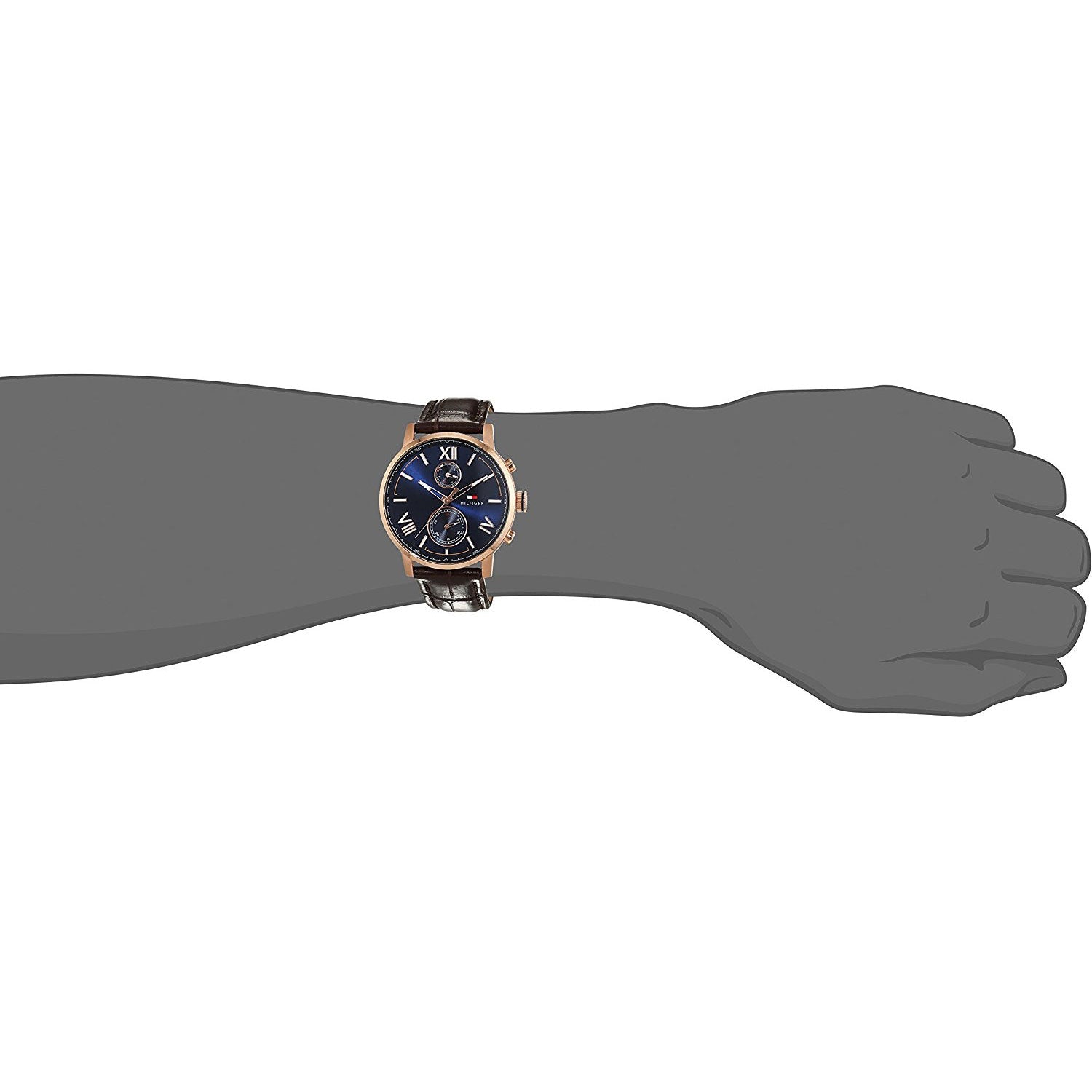Gents Tommy Hilfiger Watch Collection. Rose Gold Tone Steel Case. Brown Leather Band. Blue Dial. Multi Function Dial. Case Size: 44 Mm. Scratch Resistant Mineral Crystal. Water Resistant: 50 Meters 165 Feet. Movement: Quartz. Comes With Original Box And Booklet. : 10 Years.