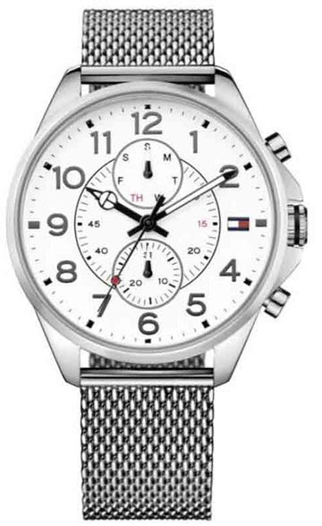 Tommy Hilfiger Dean Chronograph White Dial Silver Mesh Bracelet Watch for Men - 1791277Tommy Hilfiger Dean Chronograph White Dial Silver Mesh Bracelet Watch for Men - 1791277