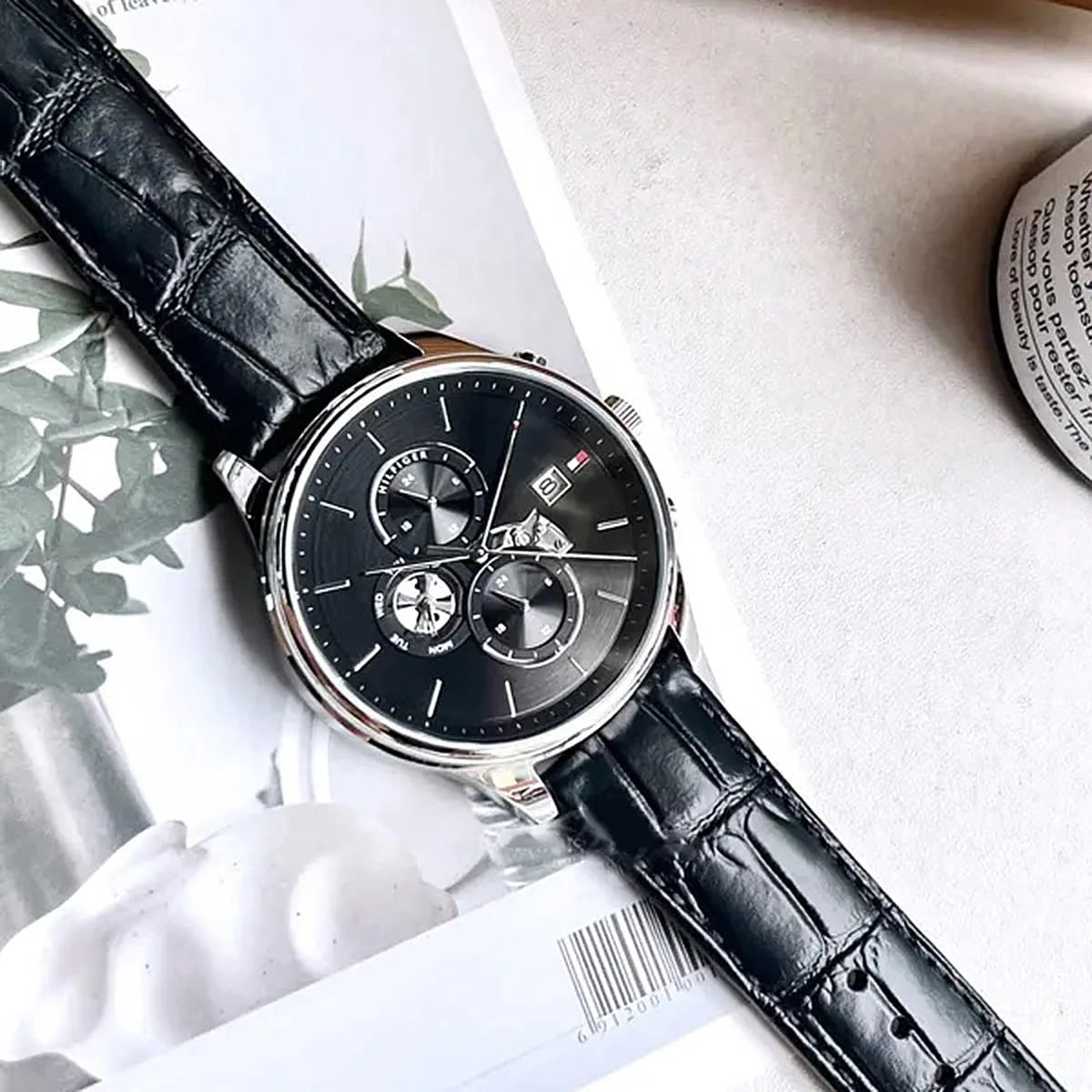 Tommy Hilfiger Weston Chronograph Black Dial Black Leather Strap Watch For Men - 1710502Tommy Hilfiger Weston Chronograph Black Dial Black Leather Strap Watch For Men - 1710502