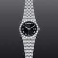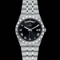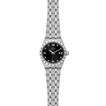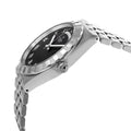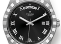 • Black sunray-finish dial with stainless steel hands and applied Roman numeral hour markers