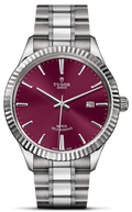 Tudor Style 41mm Burgundy Dial Stainless Steel Unisex Watch Model M12710-0015. Stainless Steel case with Stainless Steel watch band. Deployment clasp. Fluted bezel. Dial description: Silver hands and Index hour markers with minute markers around the outer rim on a Burgundy dial. Automatic Self Winding movement. Powered by Tudor Calibre 2824 engine with 38 hours power reserve. Watch functions: Date, Power Reserve, Hour, Minute, Second. Screw Down crown. Scratch Resistant Sapphire crystal. Round case shape. Case size: 41mm. Solid case back. 100 Meters - 330 Feet water resistant.