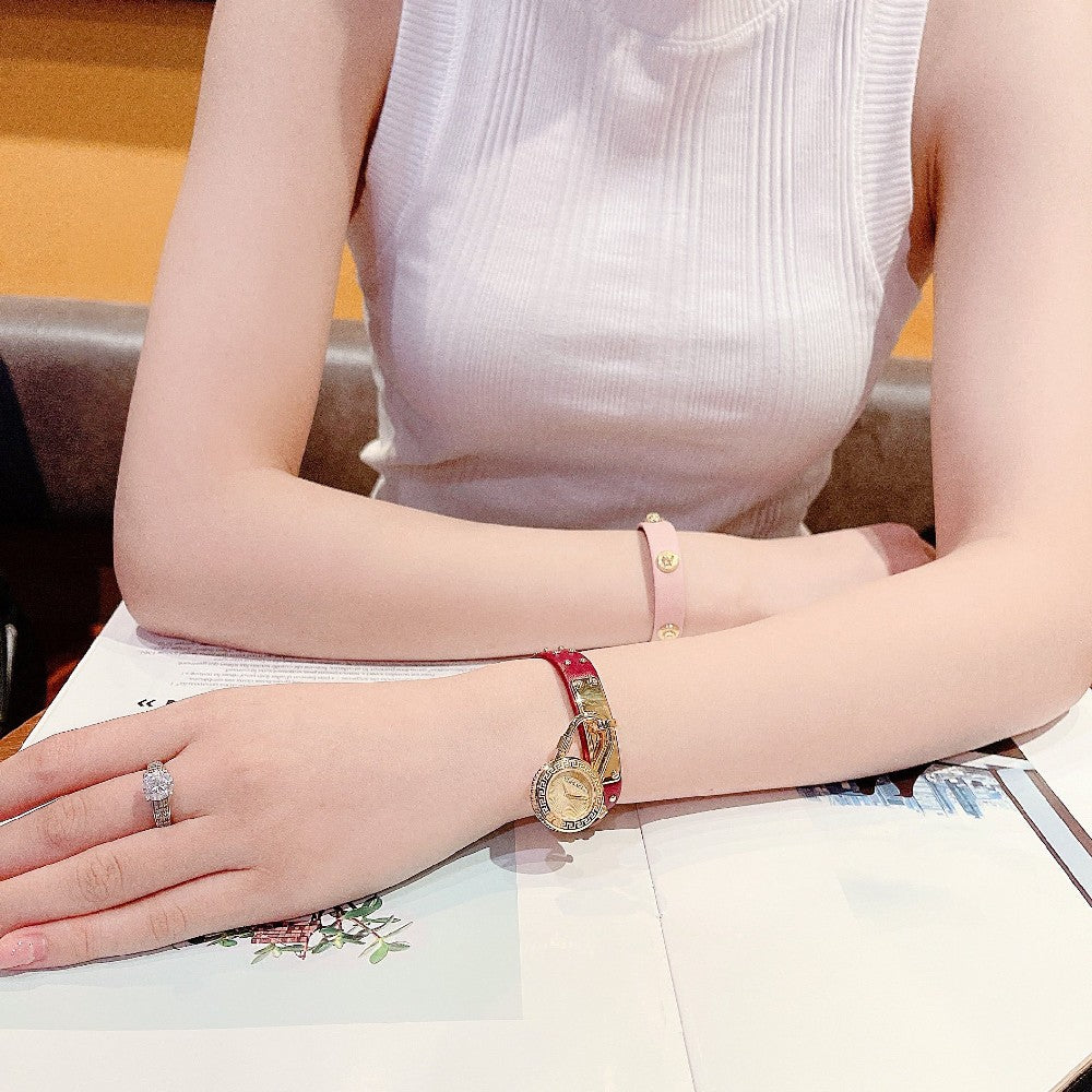 Versace Medusa Lock Icon Gift Set VEDW00319 is an elegant women's model, ideal for official or office outfits. The driving force of the watch is a reliable battery-powered quartz movement. The case of the timepiece is made of durable stainless steel in gold.Thanks to the red and pink leather strap, the watch looks beautiful and perfectly fits a wrist. A legible gold dial features a sapphire crystal that is resistant to scratches. A water resistance of 30 meters protects Versace Medusa Lock Icon Gift Set from small water splashes. You can buy Versace VEDW00319 in our authorised store. The product is covered by the manufacturer's warranty and comes with a beautiful branded box.