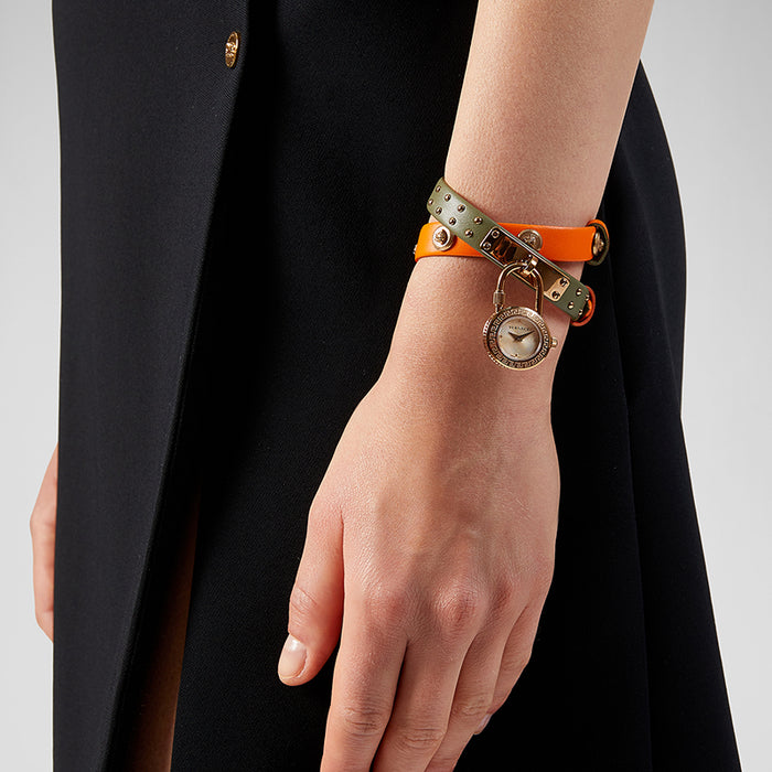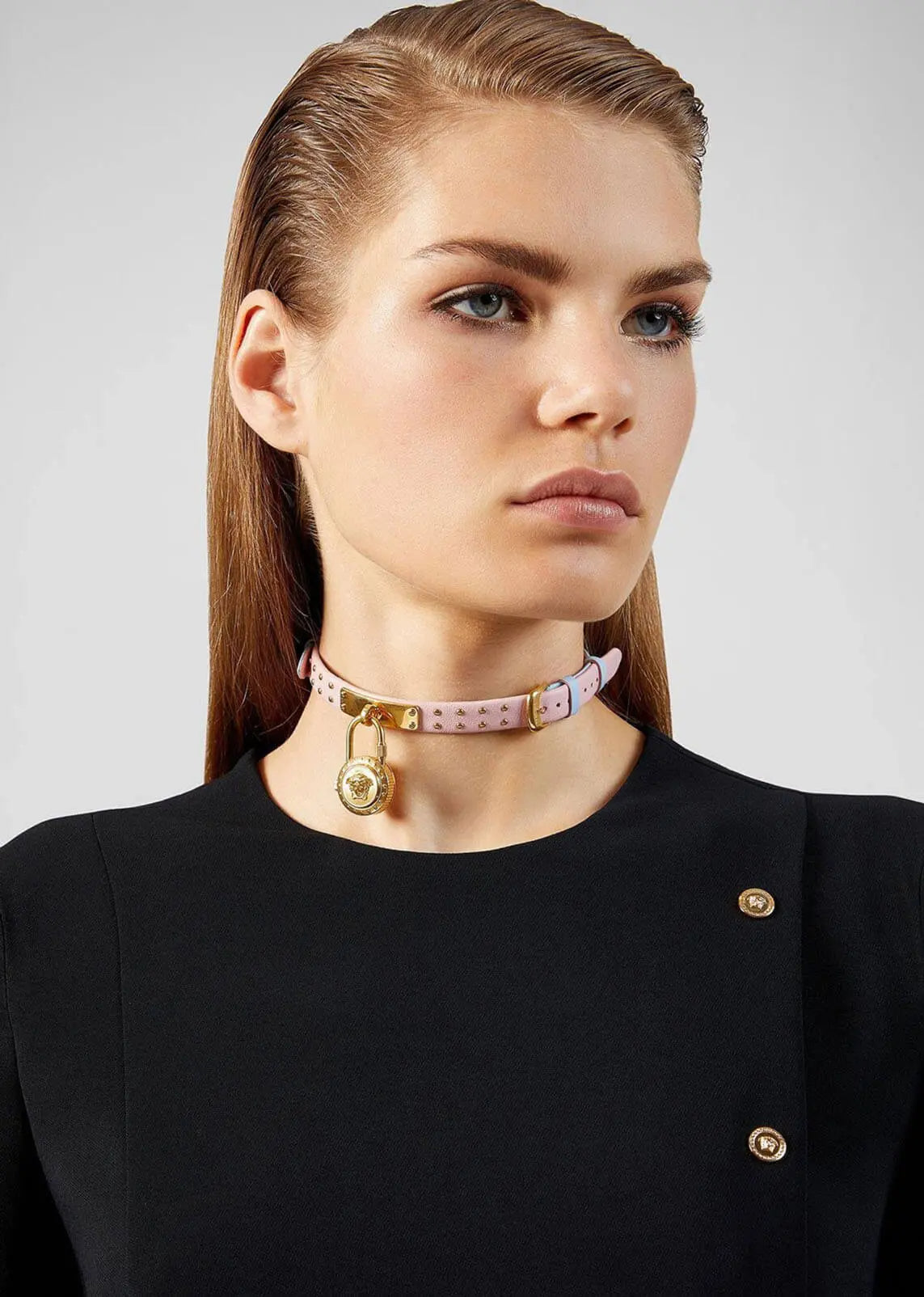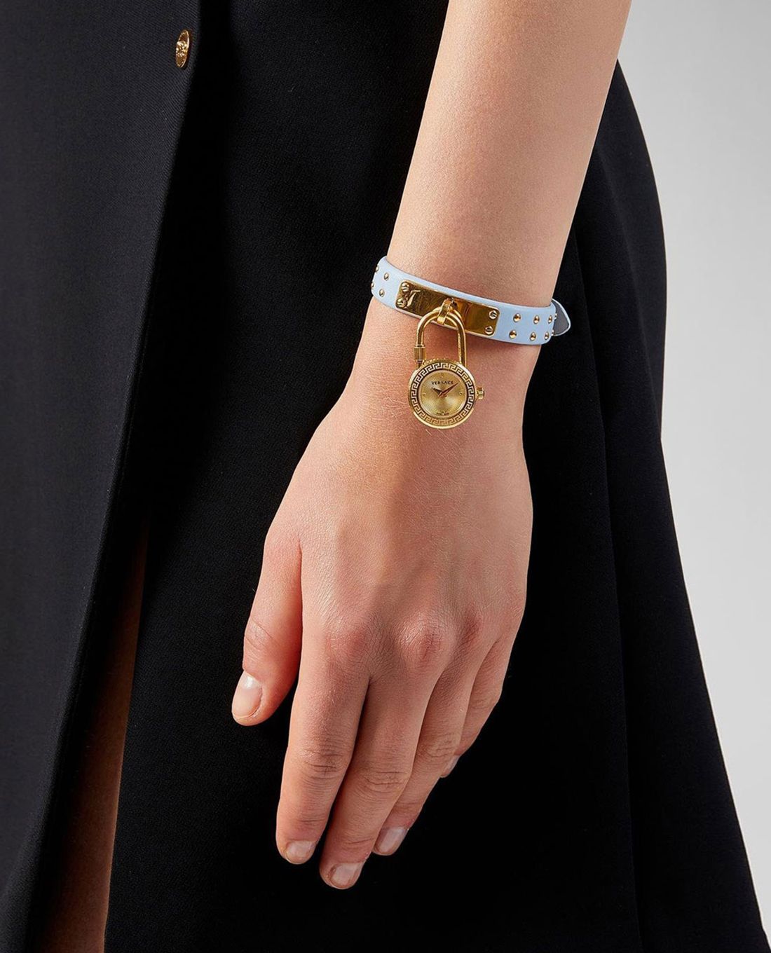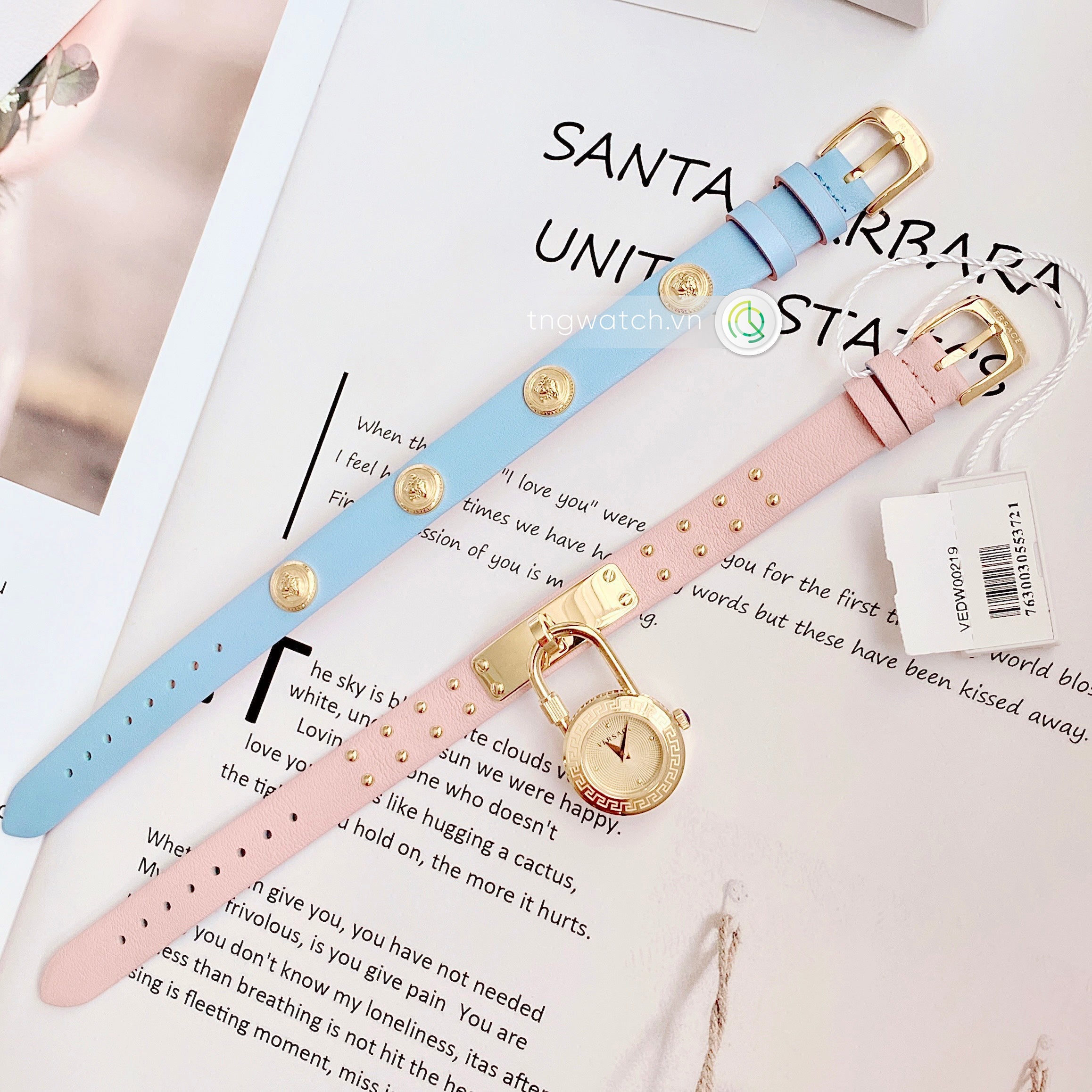 Versace Medusa Lock Icon Quartz Gold Dial Pink & Blue Leather Strap Watch For Women - VEDW00219Versace Medusa Lock Icon Quartz Gold Dial Pink & Blue Leather Strap Watch For Women - VEDW00219
