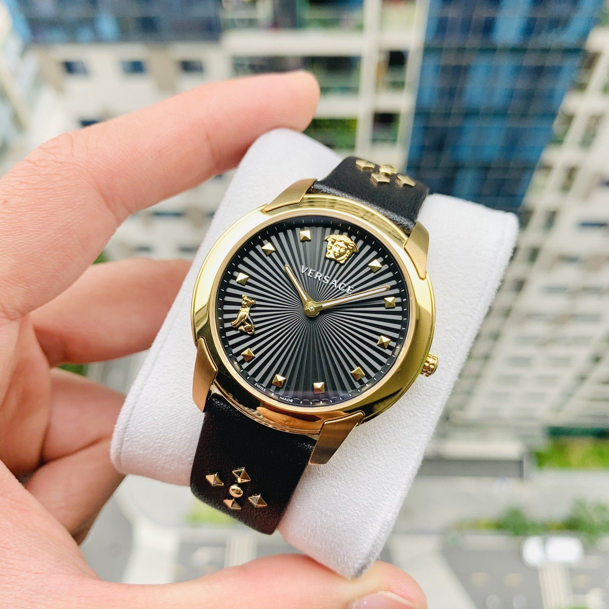 Versace Audrey Quartz Black Dial Black Leather Strap Watch for Women - VELR00319Versace Audrey Quartz Black Dial Black Leather Strap Watch for Women - VELR00319